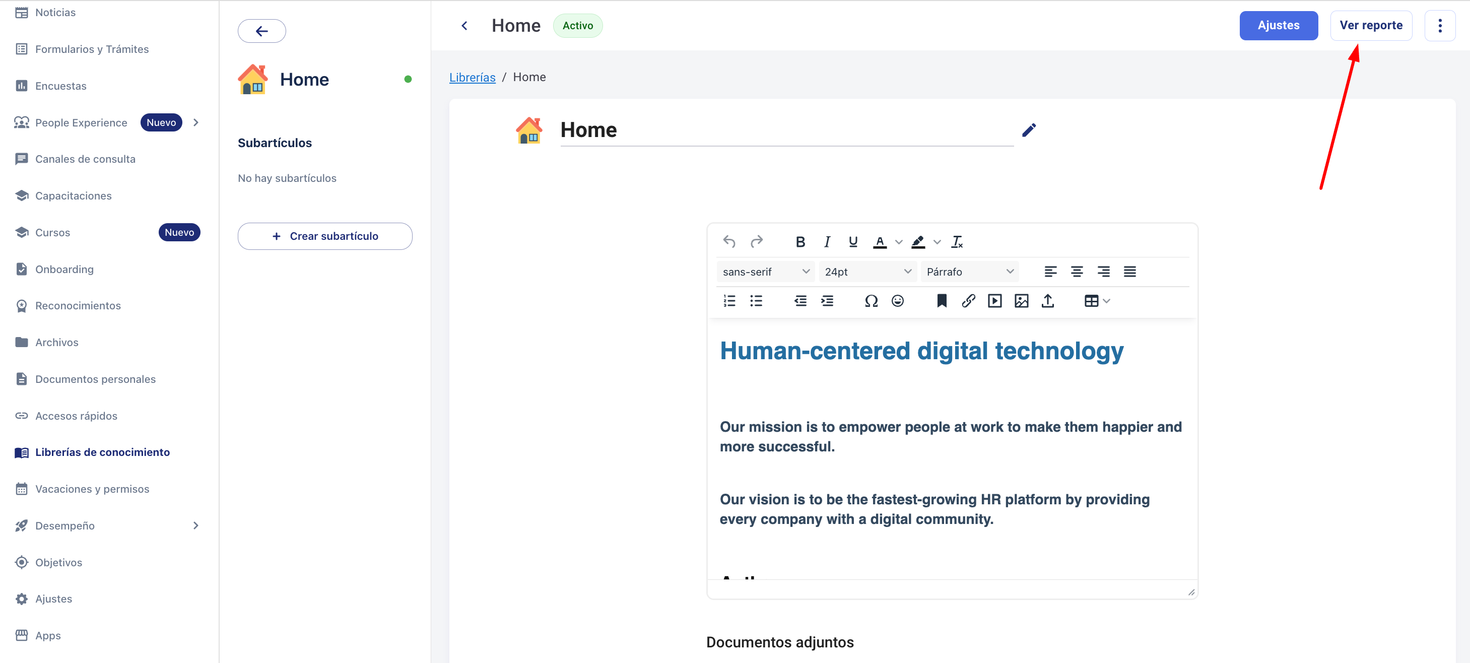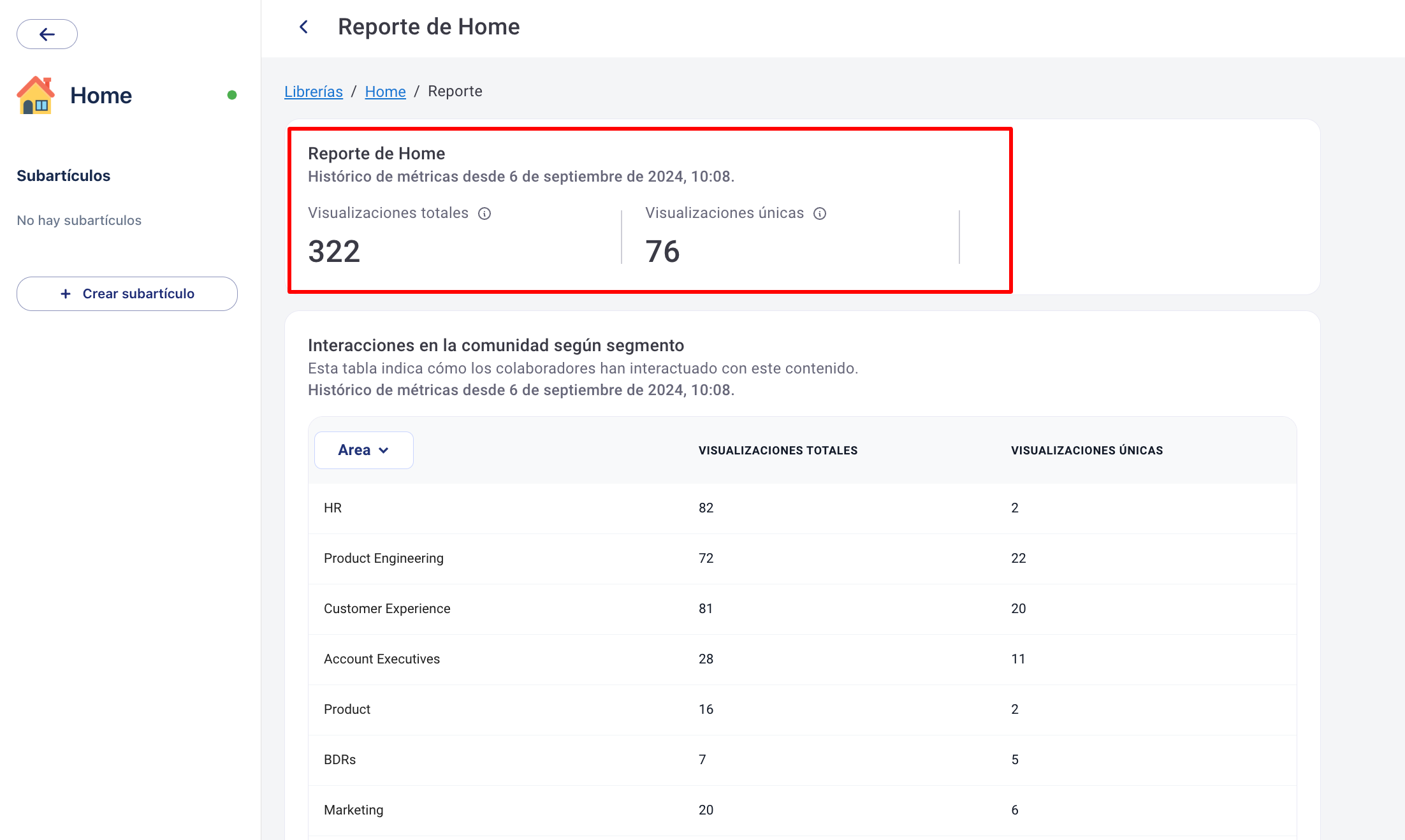 От всяка статия или подстатия, създадена в Knowledge Libraries, можете да получите достъп до основните метрики, свързани с преглежданията на съдържанието. За да видите тези отчети, следвайте стъпките по-долу: