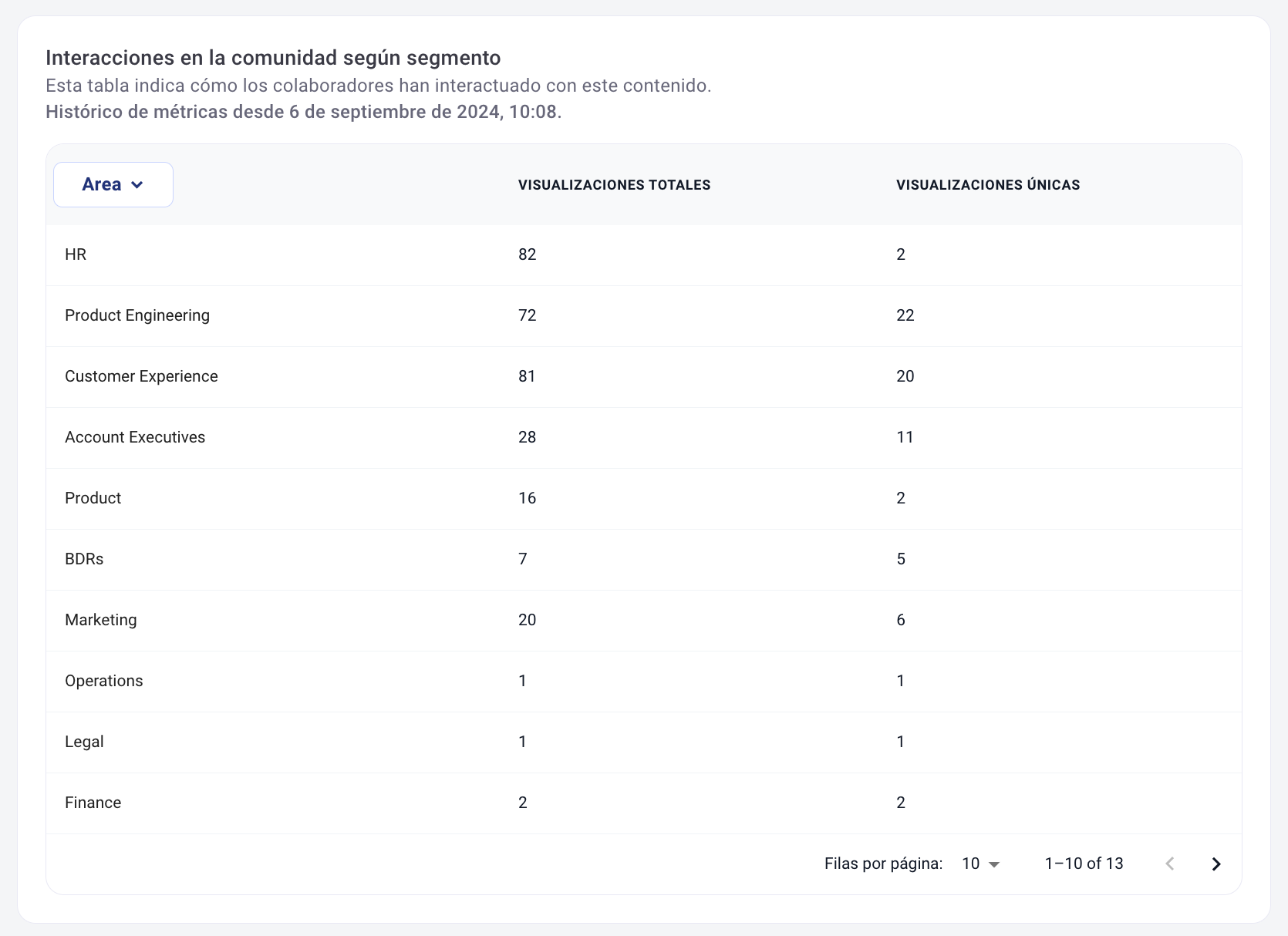 5. Можете също да видите таблица с метрики, групирани по сегментационните групи, създадени в общността: