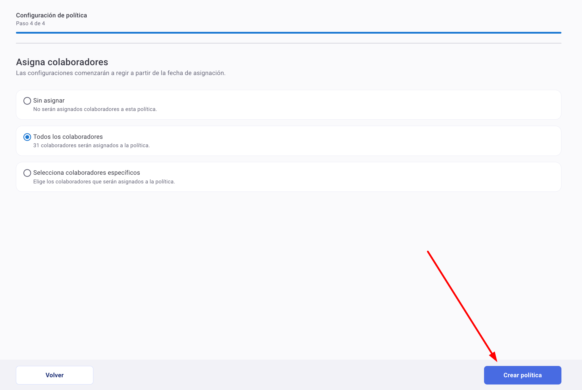 Накрая можете (по желание) да добавите сътрудници към политиката. Можете да изберете всички сътрудници в общността или само определени.