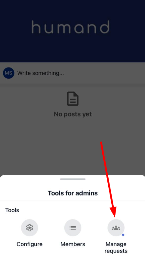 - 1. Влезте в групата, където е направена заявката, и отидете в секцията Инструменти за администратори > Управление на заявки.