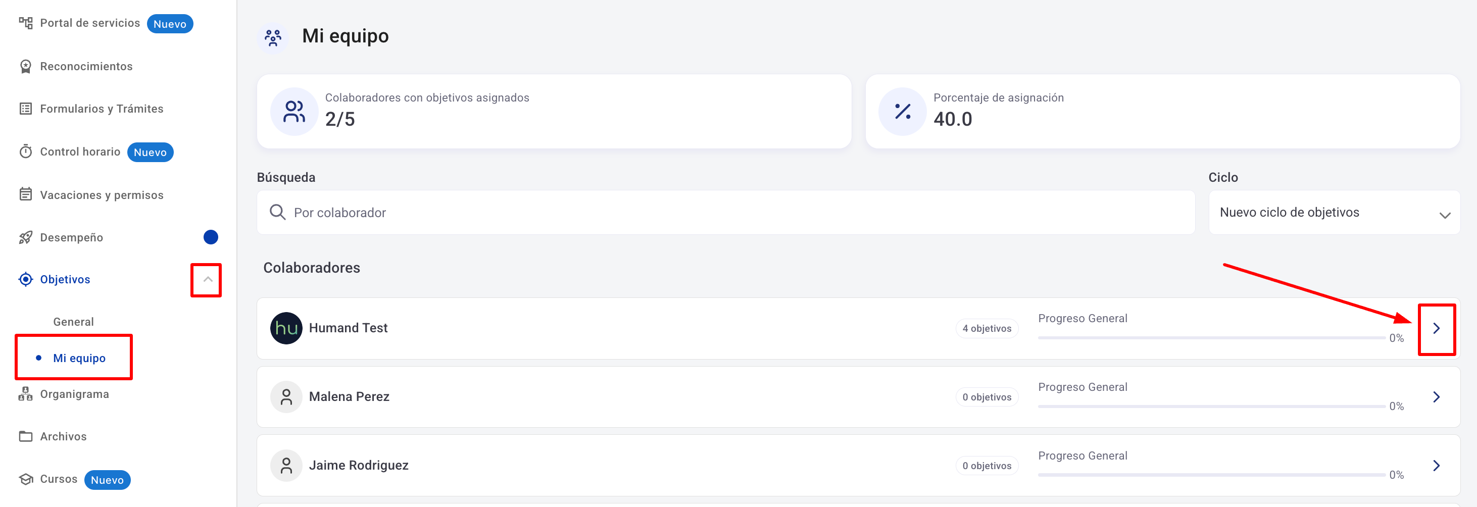 2. Отидете в секция Цели > Моят екип.