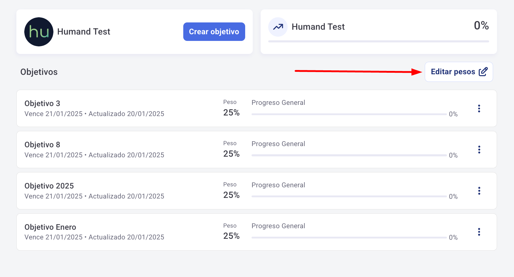 4. След като влезете, ще видите всички цели, които са възложени на потребителя. Тук трябва да изберете опцията "Редактирай тежести".
