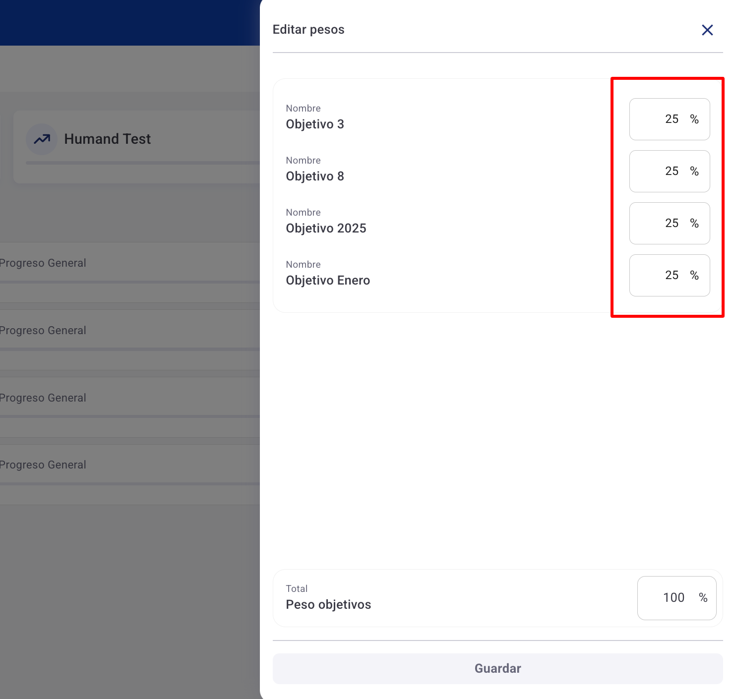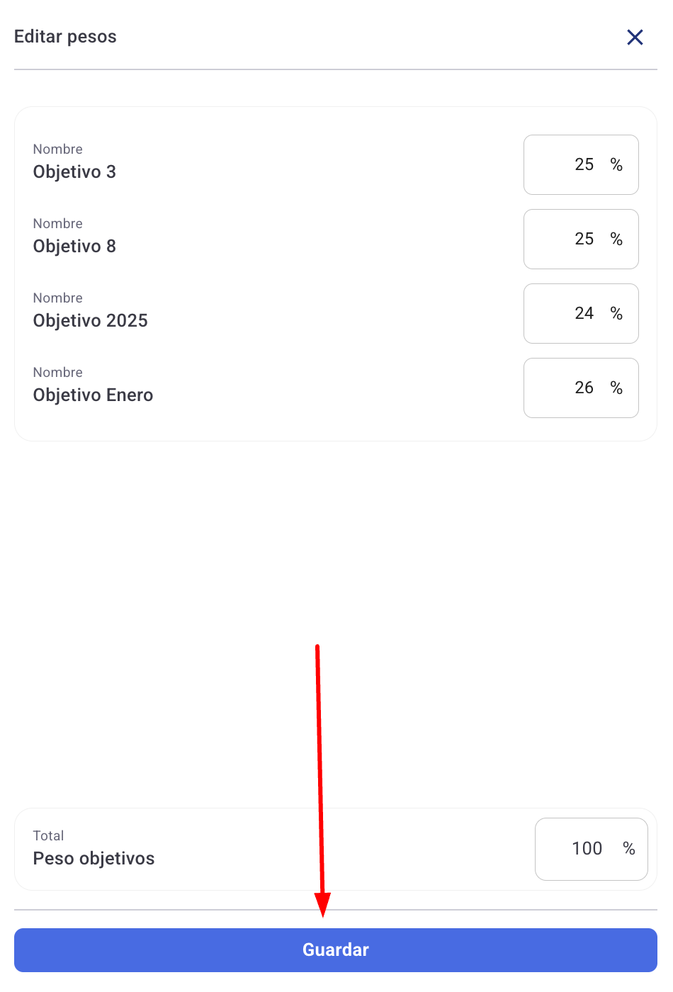 5. Тук можете да зададете желаната тежест за всяка цел. Ако тежестите не бъдат променени, по подразбиране те ще бъдат разпределени равномерно при създаването им.