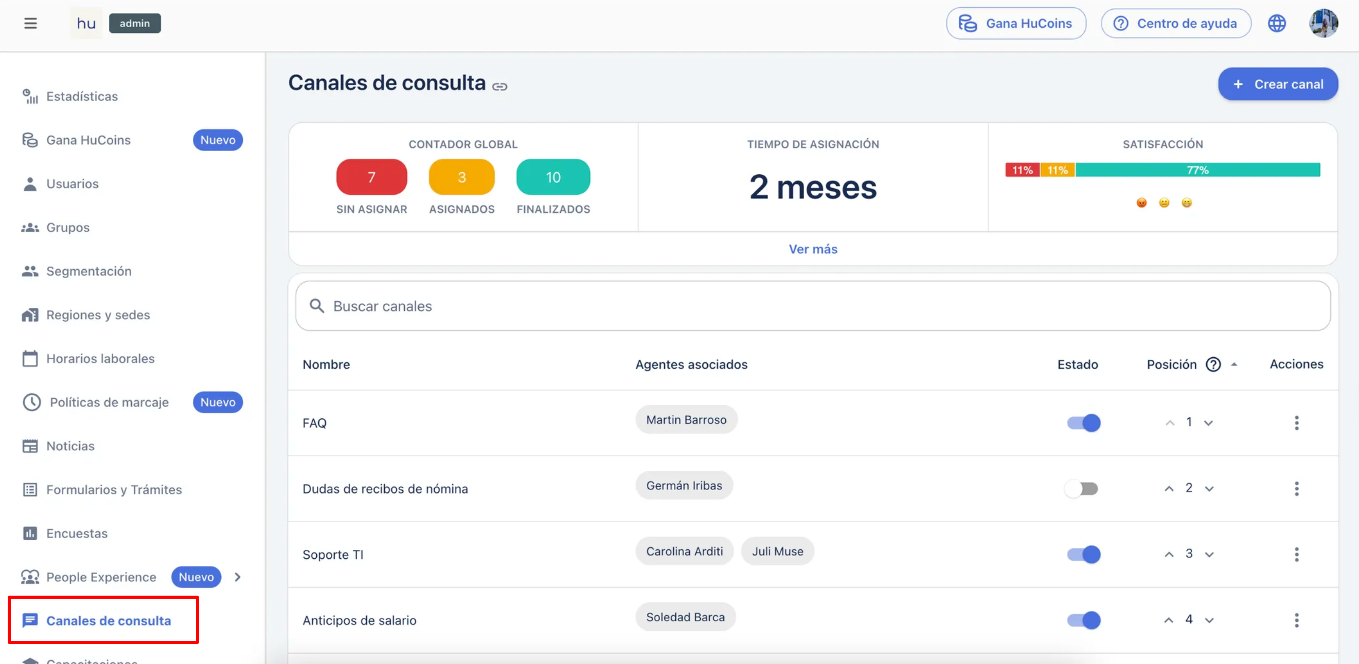 2. Отидете в секцията Inquiry Channels. Там ще видите всички канали, които имате във вашата общност.