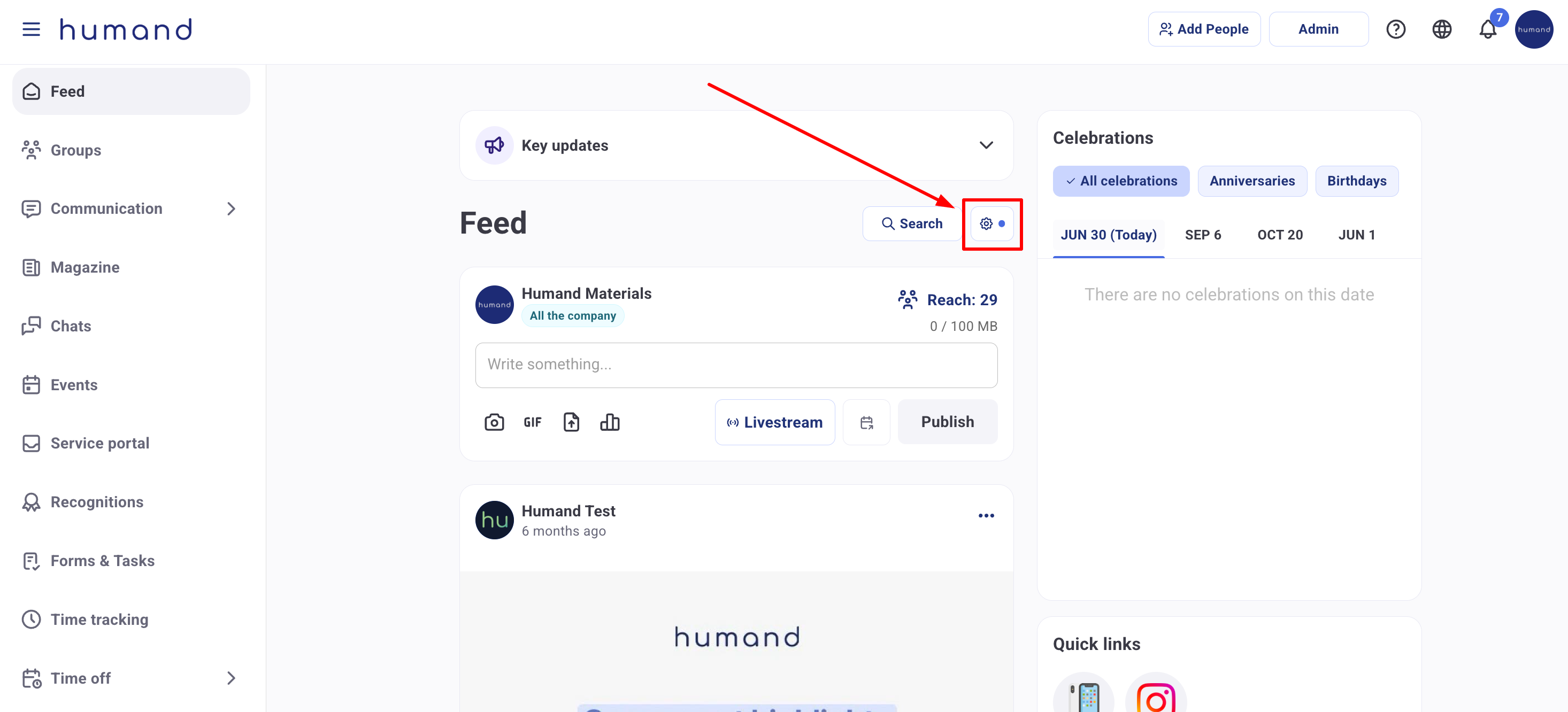 1. От секцията Feed, отидете на ⚙️ бутона.