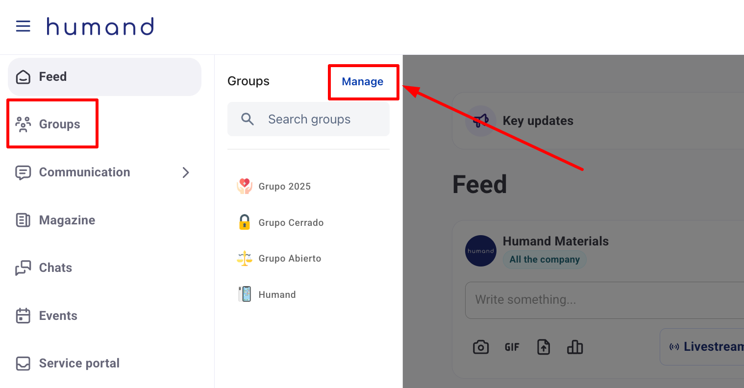 2. Отидете в секцията Групи и кликнете върху "Управление".