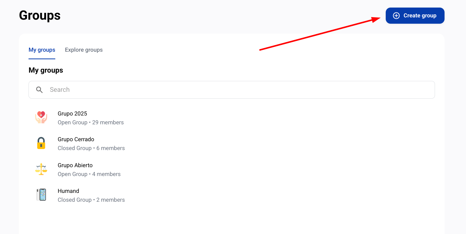 2. След това, кликнете върху бутона "+ Създаване на група".