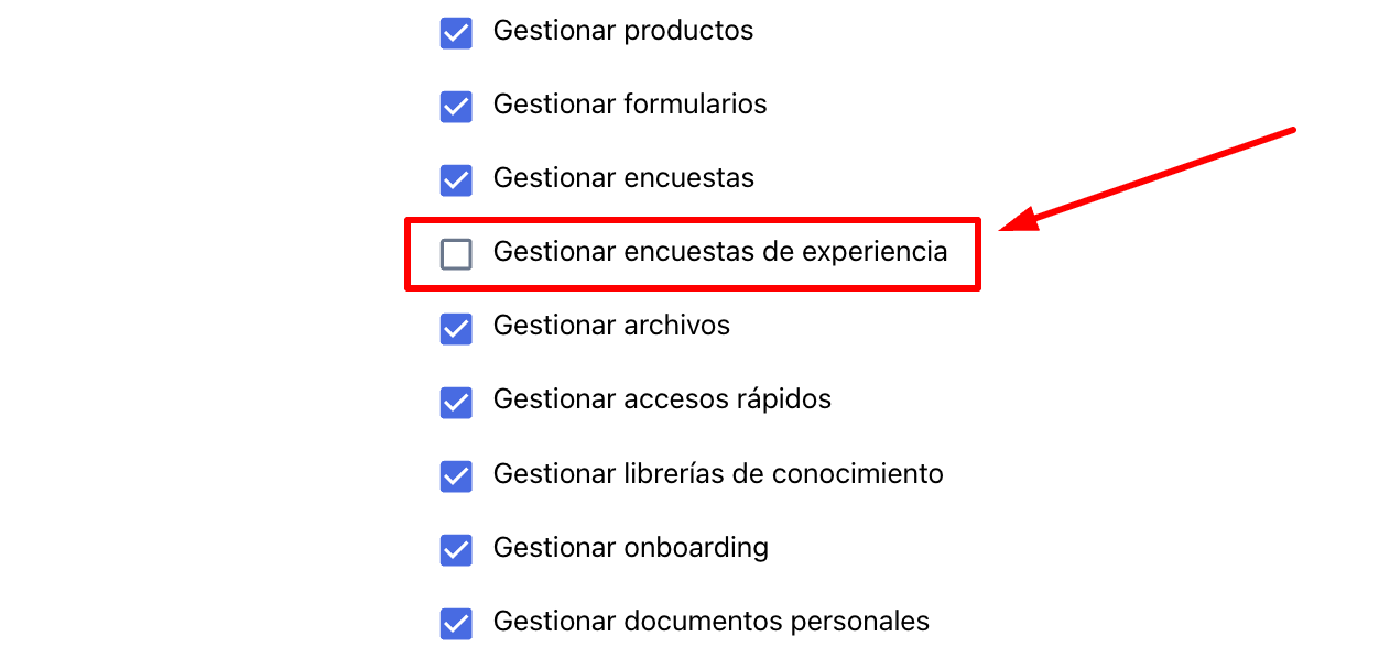 5. Отбележете правото Управление на Experience Surveys, след което натиснете "Запази".
