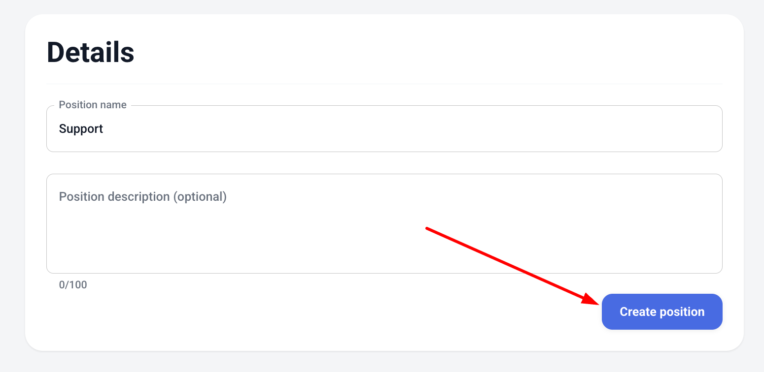 5. След това трябва да зададете име и описание (по избор) за позицията. След това кликнете върху “Създаване на позиция”.