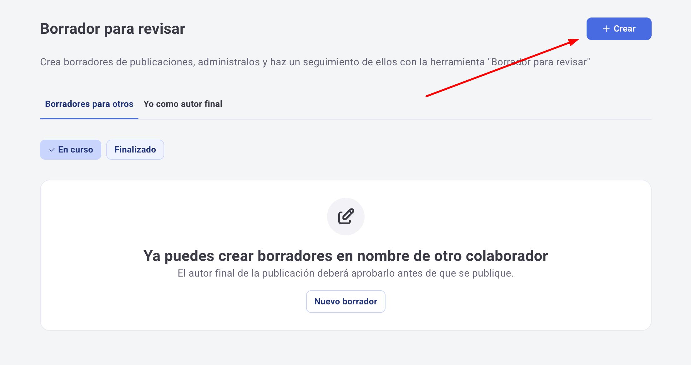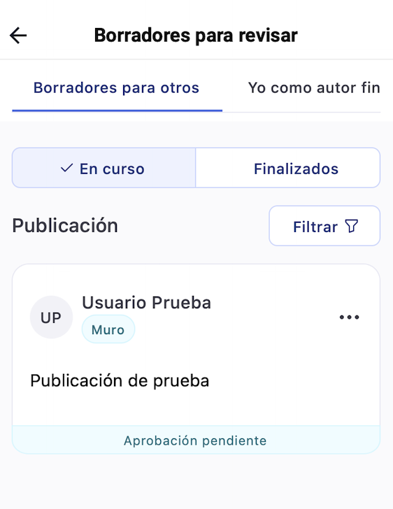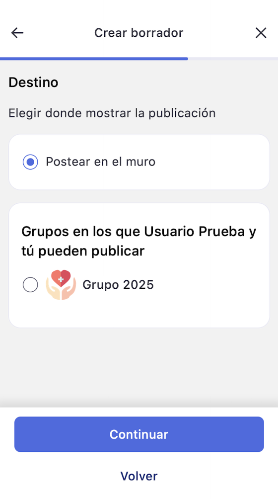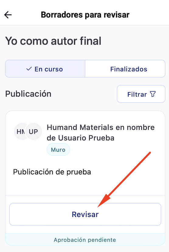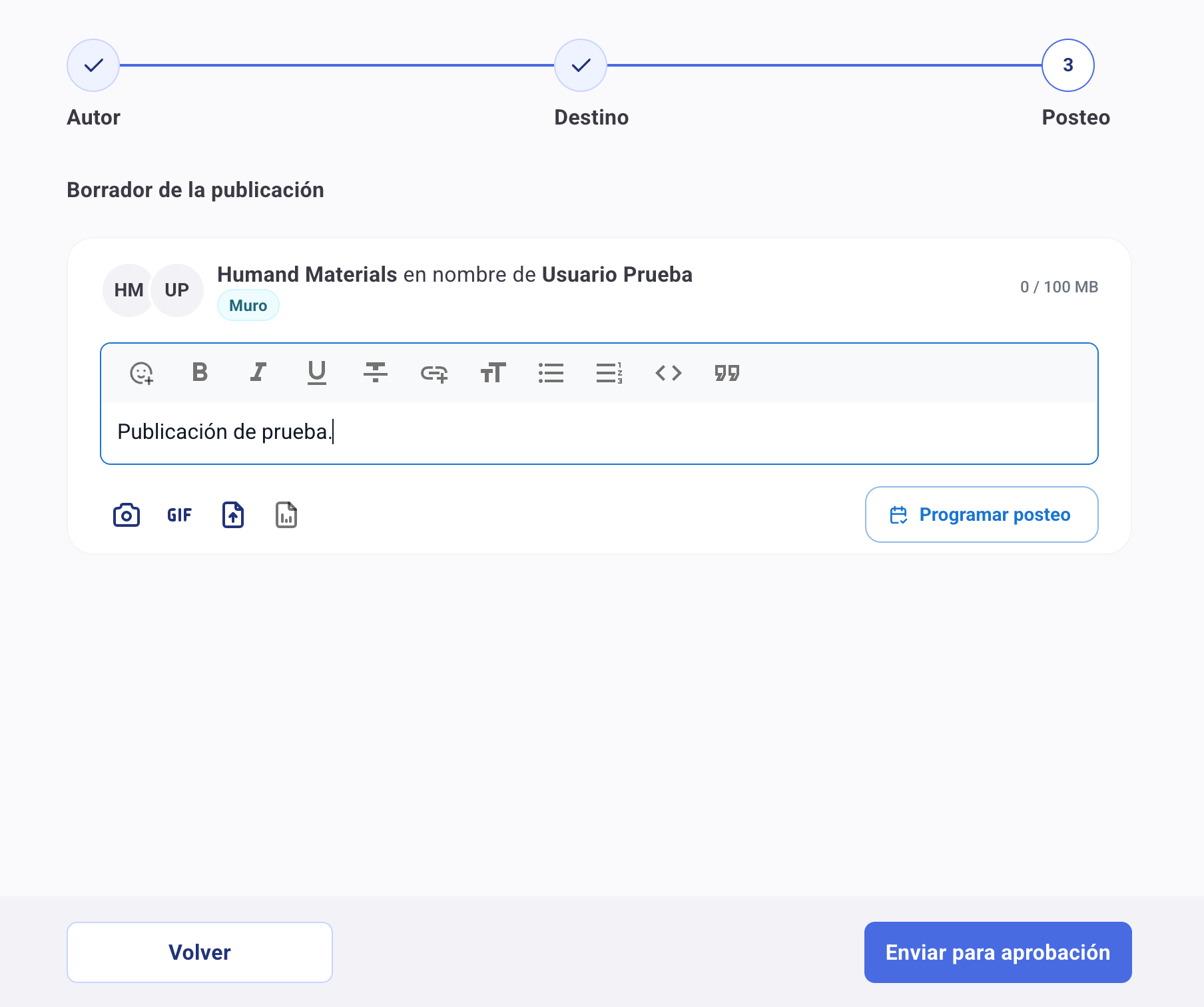 С Humand можете да създавате чернови от името на друг човек, който трябва да ги прегледа и одобри, за да бъде публикацията публикувана на Стената или в Група под негово име. За да направите това, следвайте стъпките по-долу: