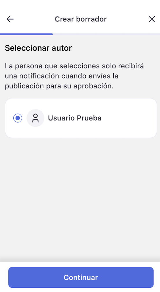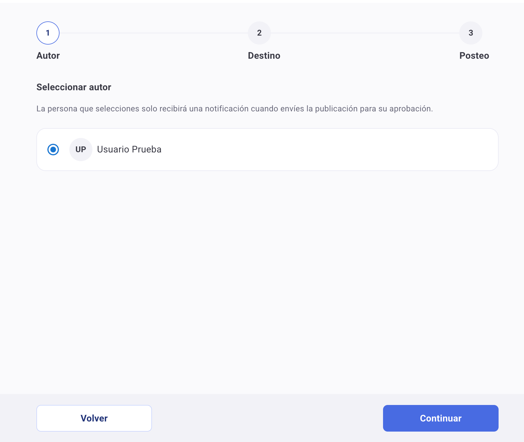 4. Първо трябва да изберете потребителя, когото искате да зададете като краен автор на публикацията. Избраният от вас човек ще получи известие само когато изпратите публикацията за одобрение.