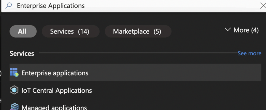 2. В горната лента за търсене въведете Enterprise Applications и кликнете върху резултата.