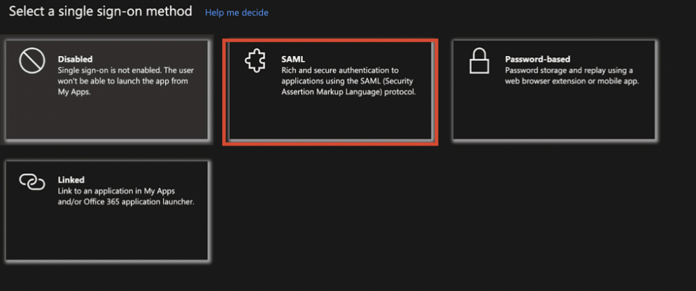 - Изберете SAML като метод за влизане.