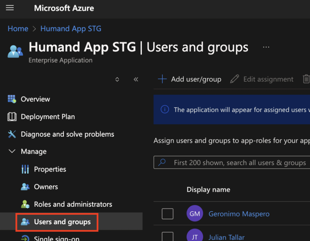 3. Изберете потребителите или групите в Azure AD, които трябва да имат достъп до Humand.