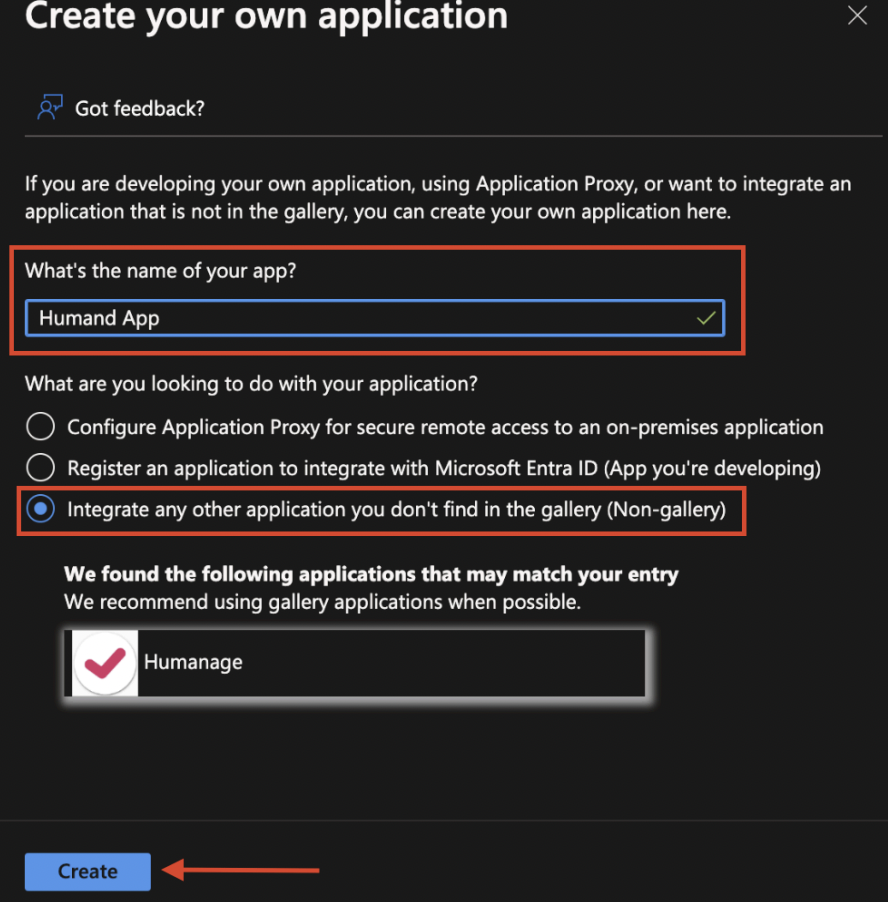 5. Въведете име на приложението (например, Humand-EndUser-SSO).