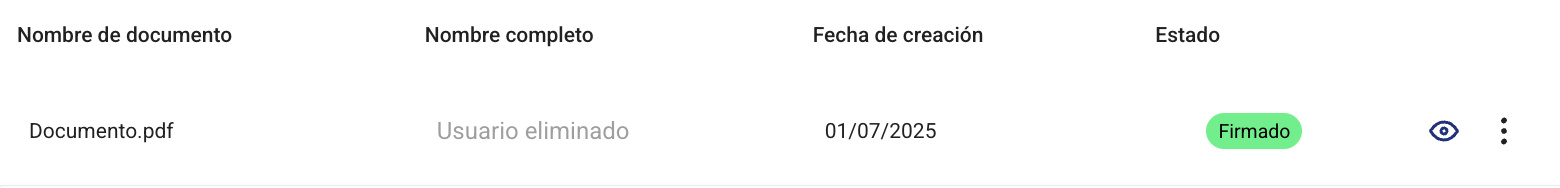 Подписаните документи, генерирани от потребител (като разписки), се запазват в платформата дори след като потребителят бъде изтрит. Въпреки това, те вече не могат да бъдат идентифицирани по име и ще се показват като принадлежащи на "изтрит потребител".