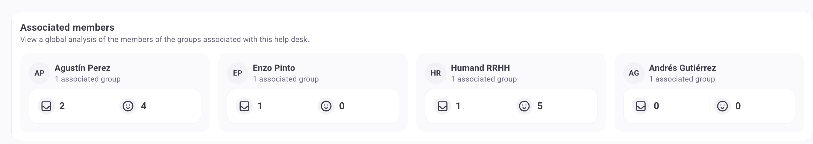 5. Можете да видите статистики по агент и да получите общ анализ на членовете на групите, свързани с този помощен център.