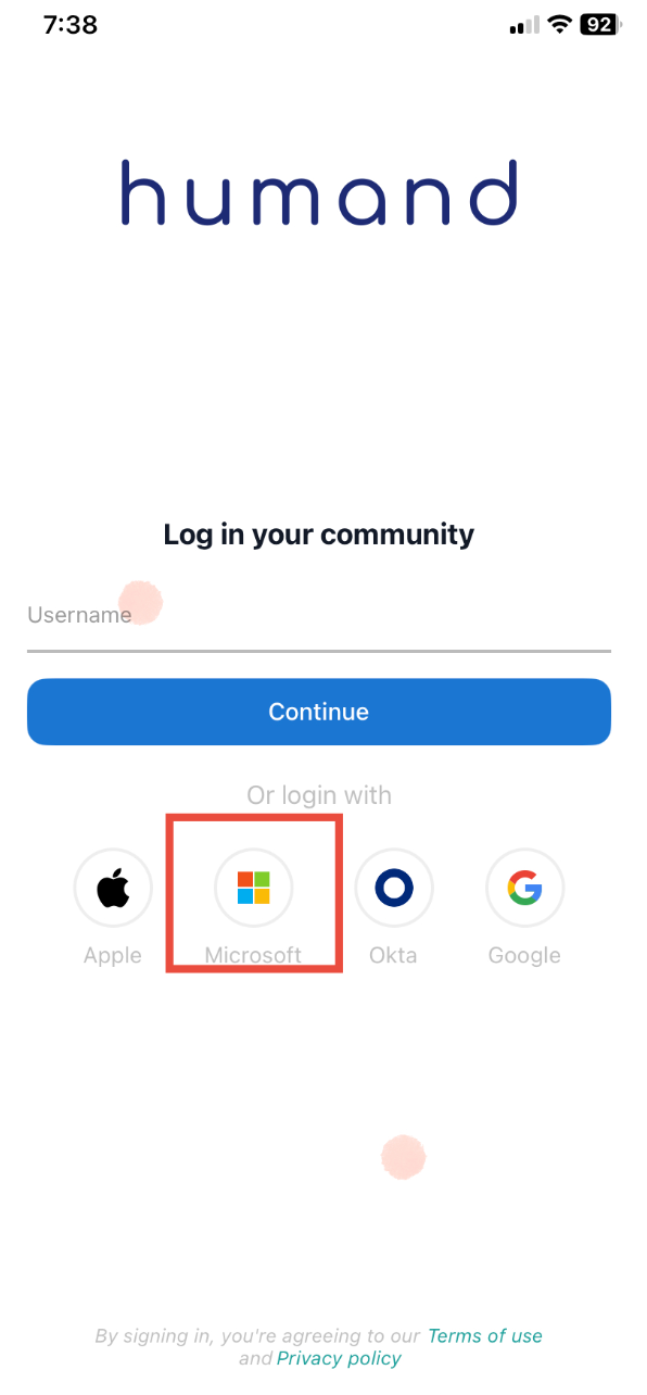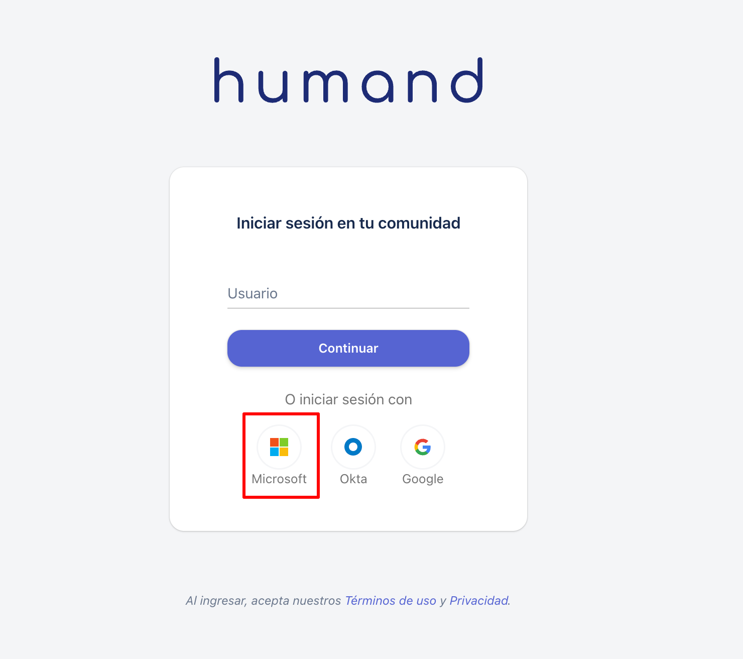 1. Влезте в Humand App с опцията за Microsoft SSO.
