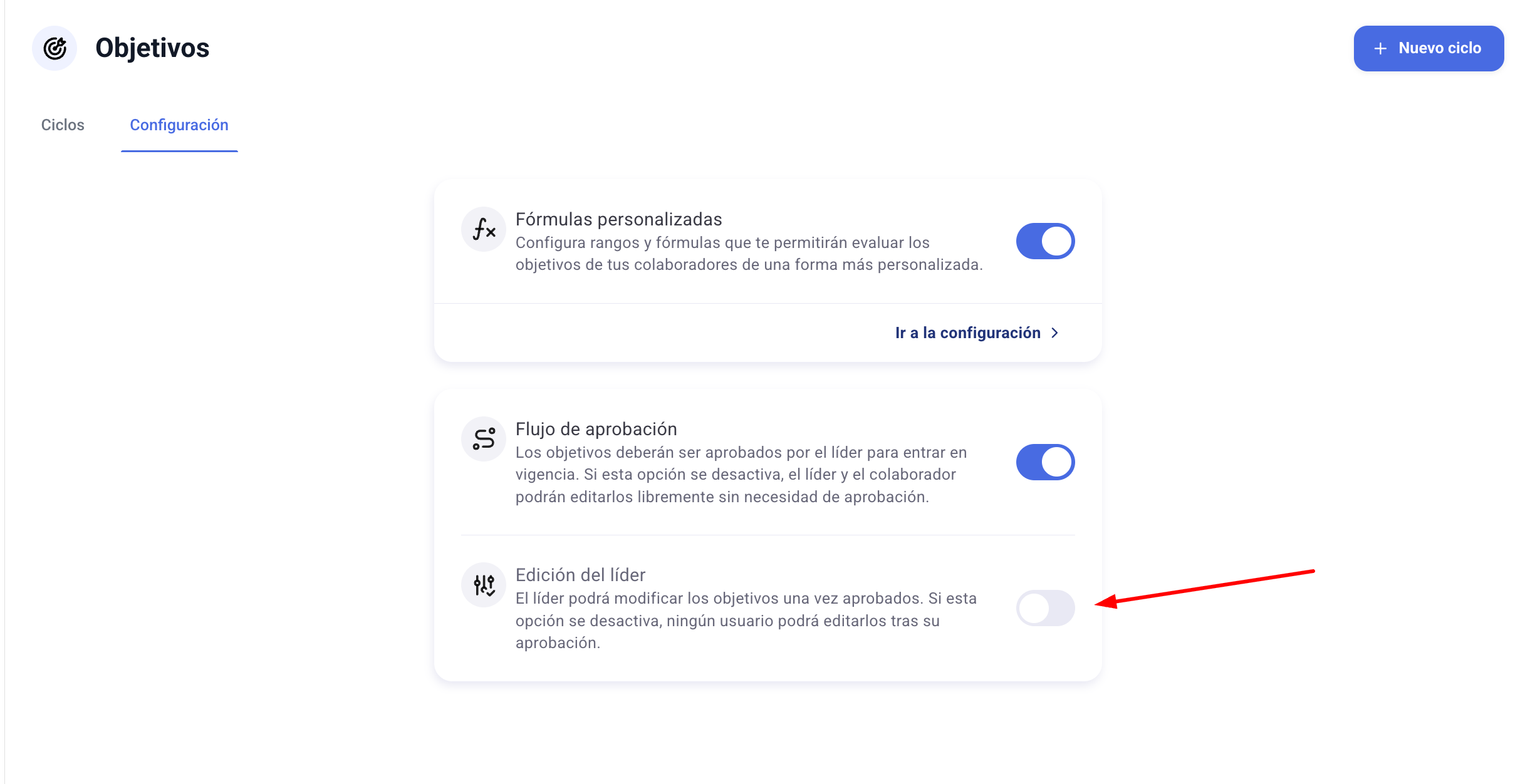 3. Оттук можете да разрешите или забраните опцията "Редактиране от лидер". Когато е разрешена, лидерът може да променя целите след одобрение. Ако тази опция е изключена, никой потребител не може да ги редактира след одобрение.