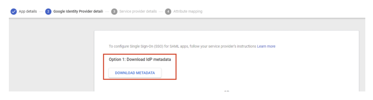 - На страницата Информация за Google IdP кликнете Изтегляне на метаданни.