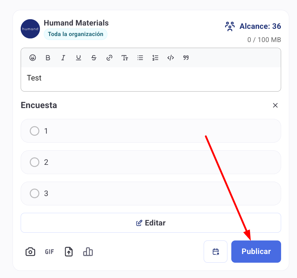 5. След като добавите опциите, въведете желания текст и натиснете "Публикувай".