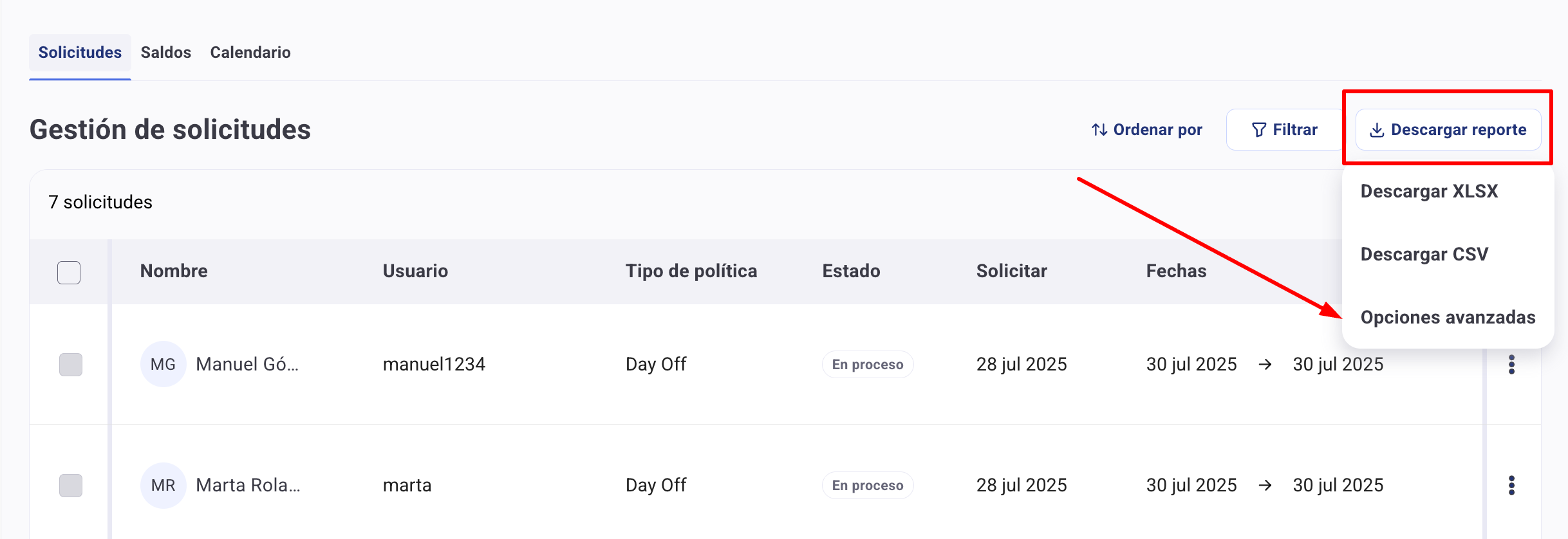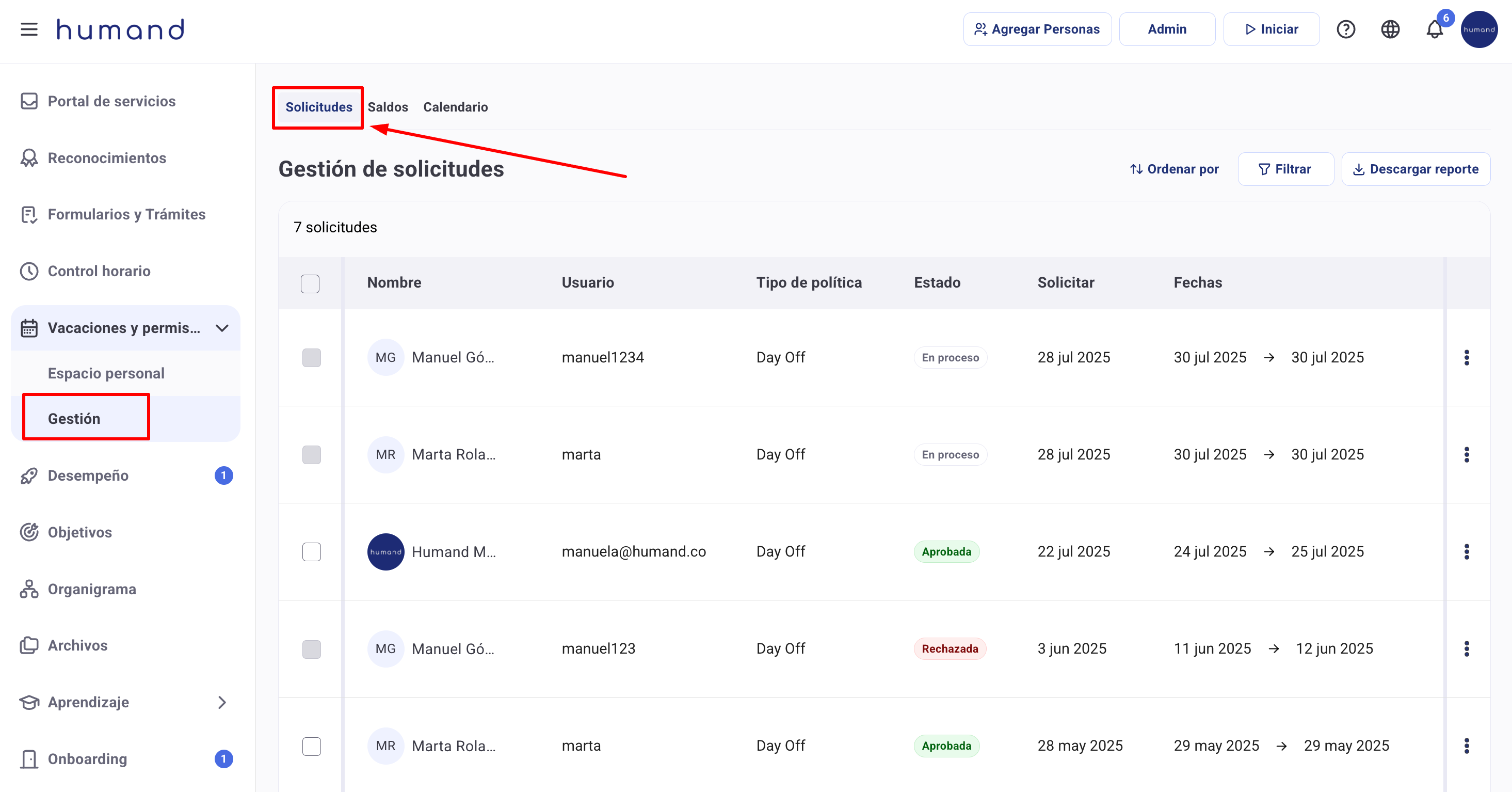 С Humand App можете да изтеглите отчет за заявките на потребителите, който включва и файловете, които те качват. За да получите достъп до документите, прикачени от служителите в техните заявки за отпуски и отсъствия, следвайте стъпките по-долу: