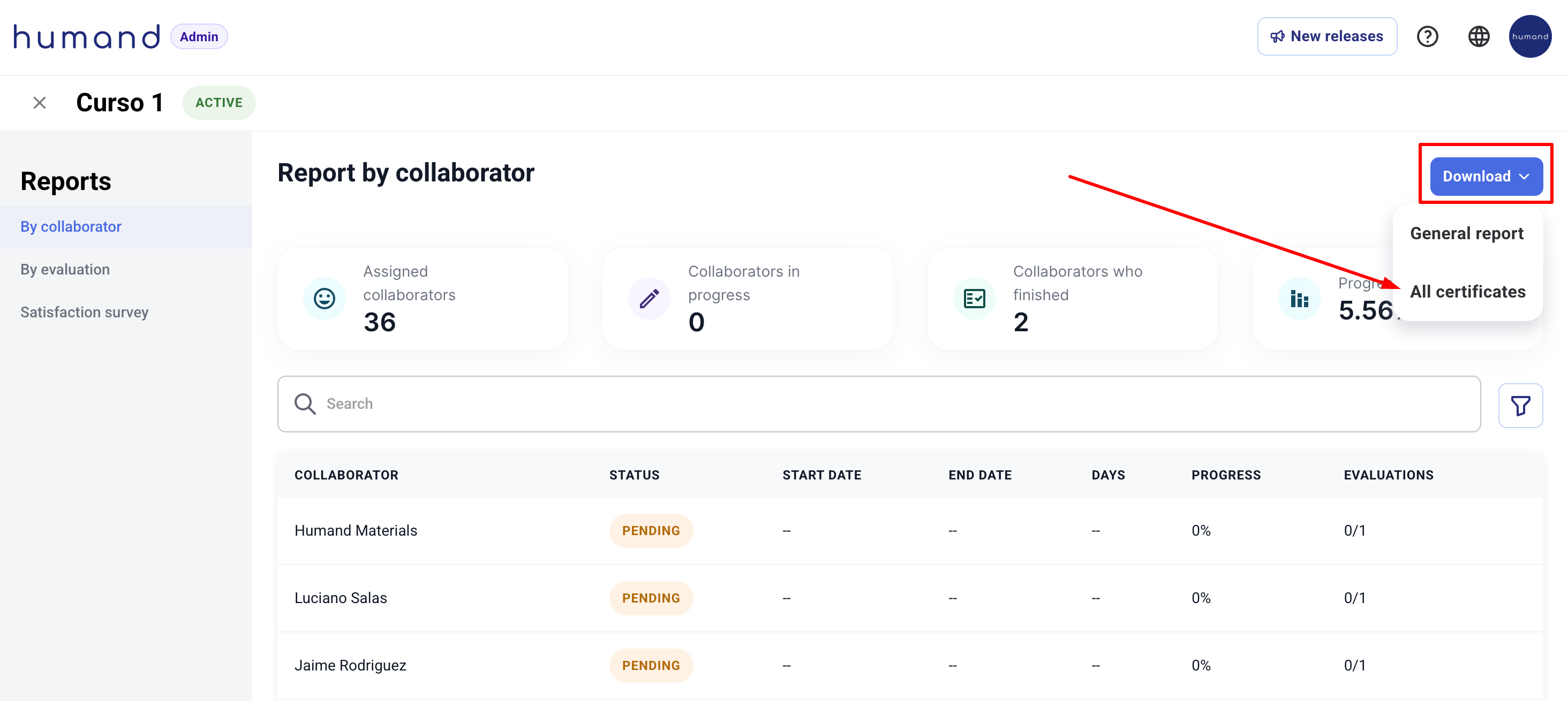 4. След като изберете бутона "Изтегли", кликнете върху опцията "Всички сертификати".