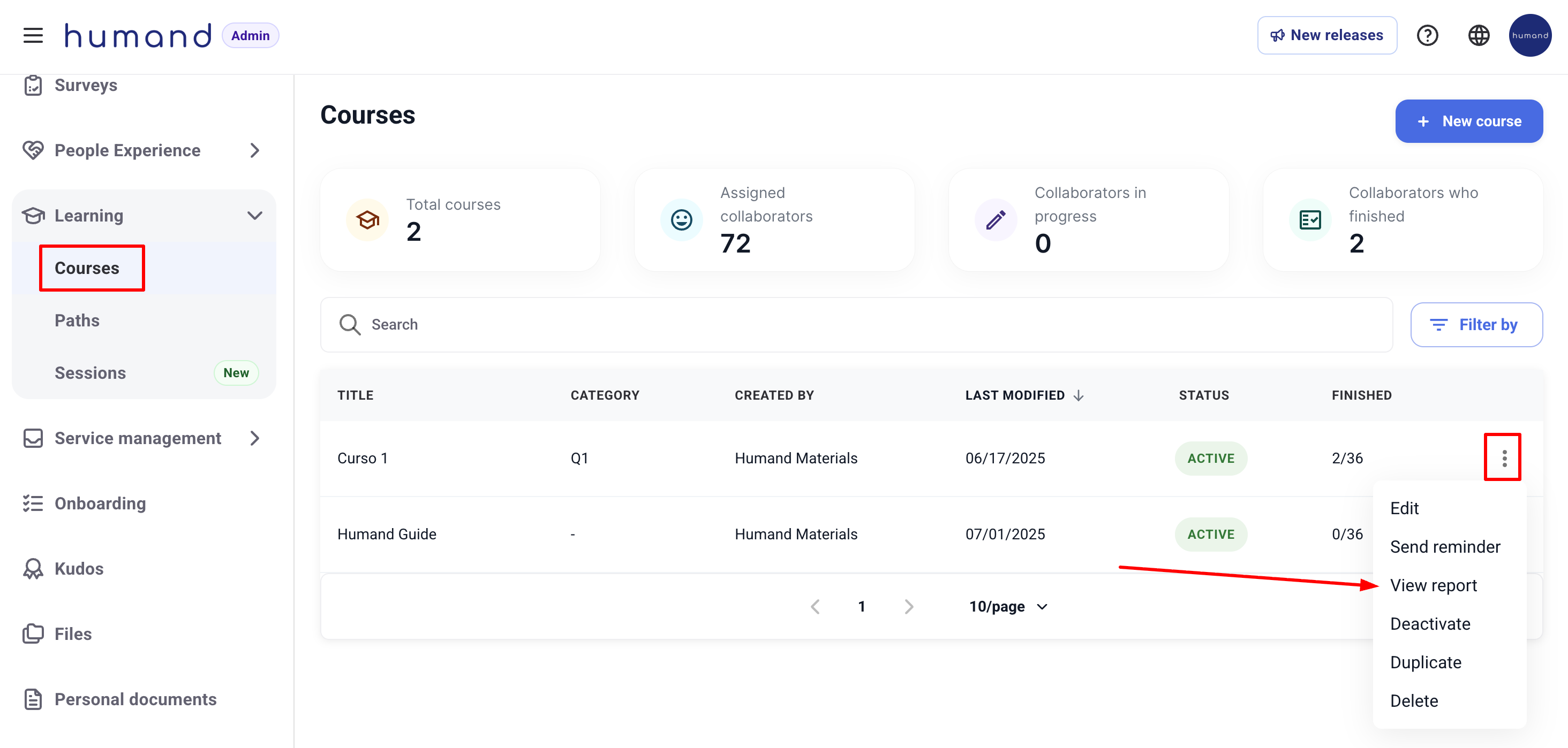 3. Кликнете върху "Виж отчет" за съответния курс.