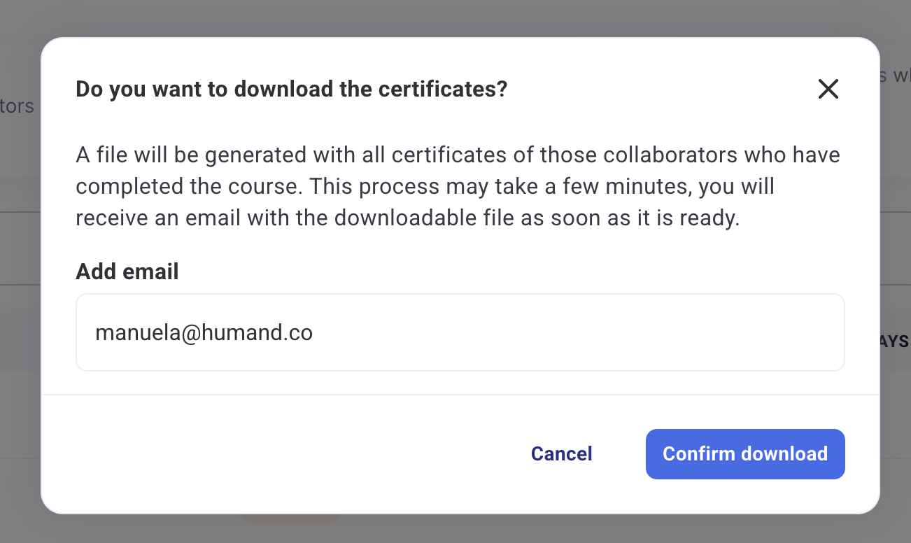 5. Накрая въведете имейла, на който искате да получите сертификатите (те ще бъдат изпратени в ZIP файл), и натиснете "Потвърди изтеглянето". Готово!