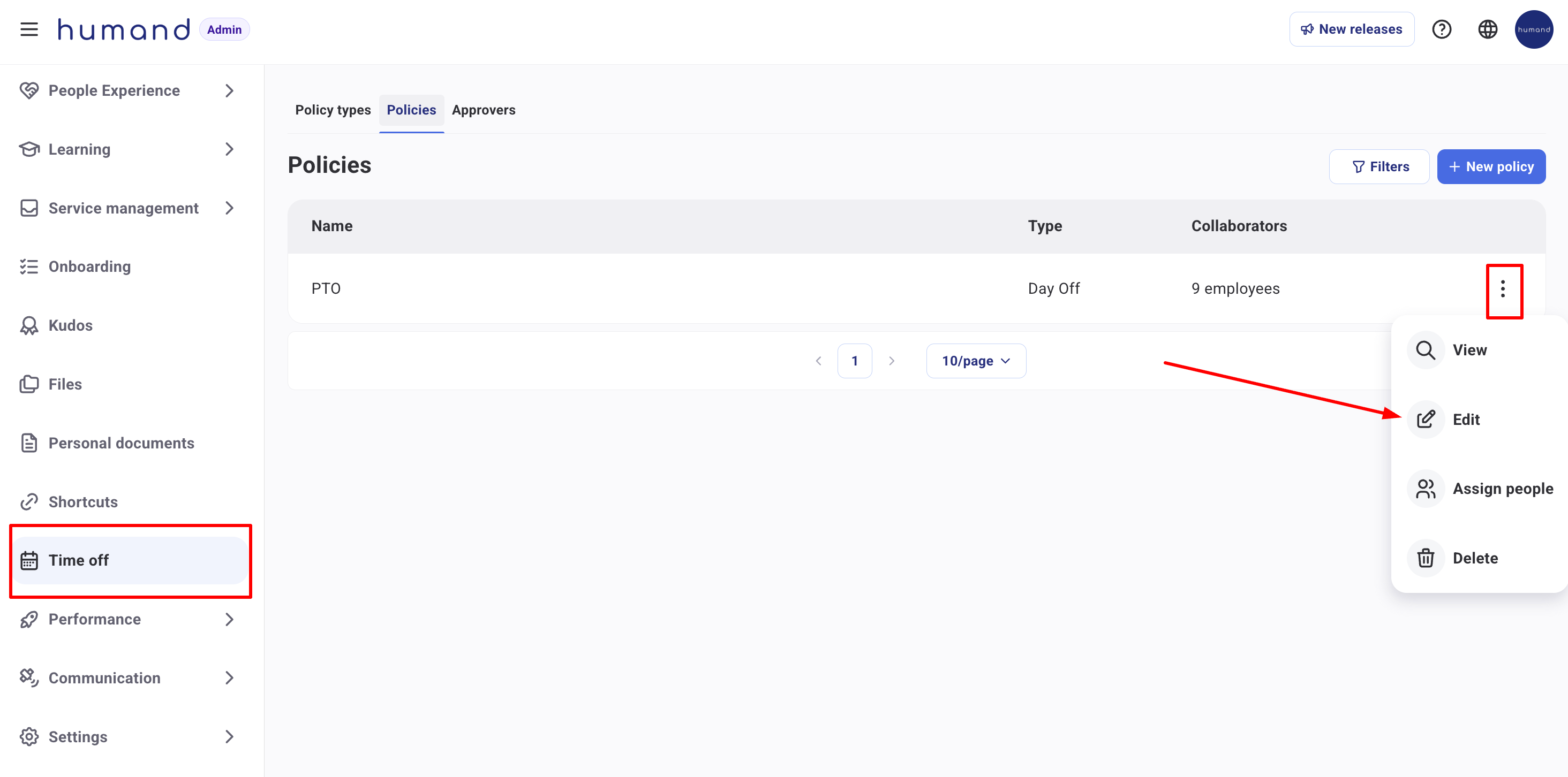 2. Отидете на Отпуски и отворете политиката, която искате да настроите.