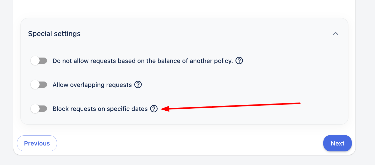 3. В секцията "Заявка" ще намерите таб Специални настройки. Вътре ще има опция "Блокирай заявки за конкретни дати".