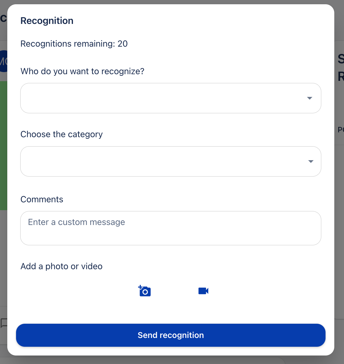 You can give a recognition either from Humand App or Humand Web. Below we explain the steps, depending on the system:
