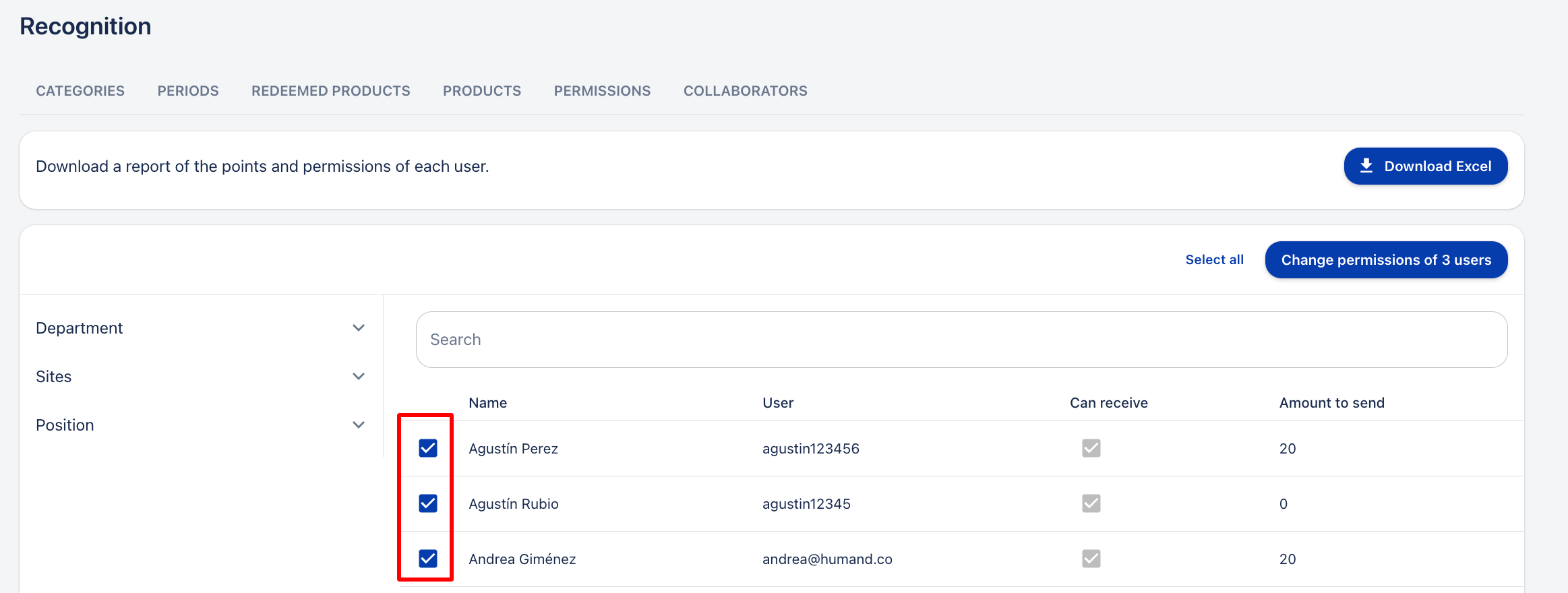 Once you have selected the users, you must click on “Change permissions of X users”.