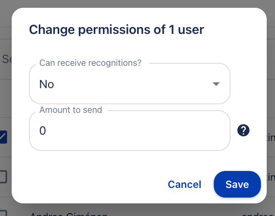 To configure whether a user can receive recognitions, follow these steps: