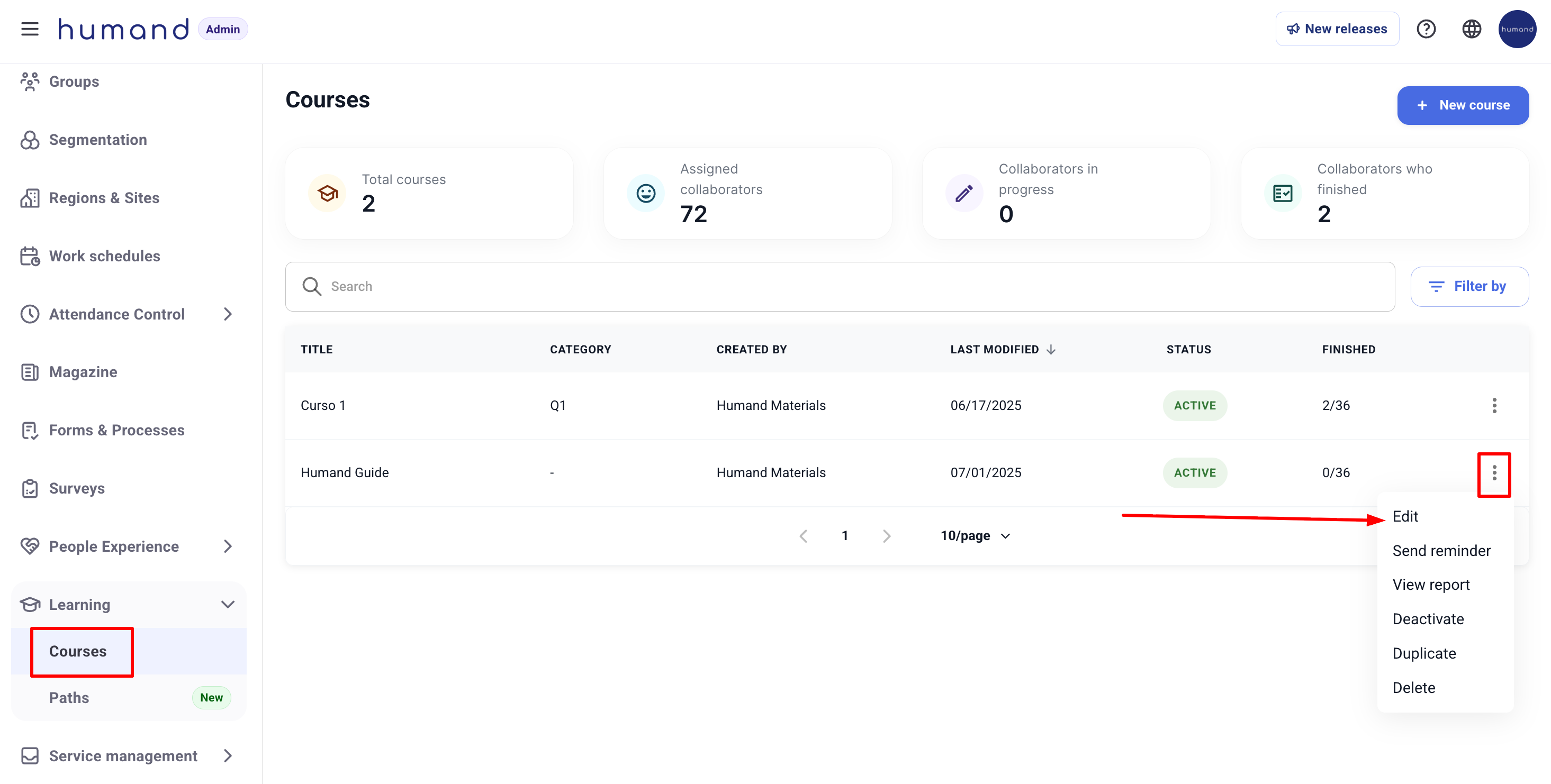 1. On the left menu, go to Learning > Courses.