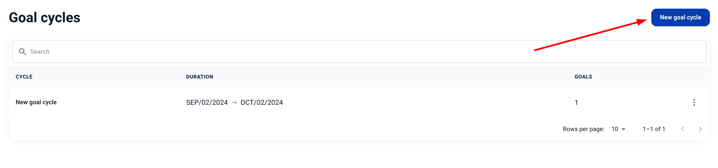 3. Click on + New goal cycle: