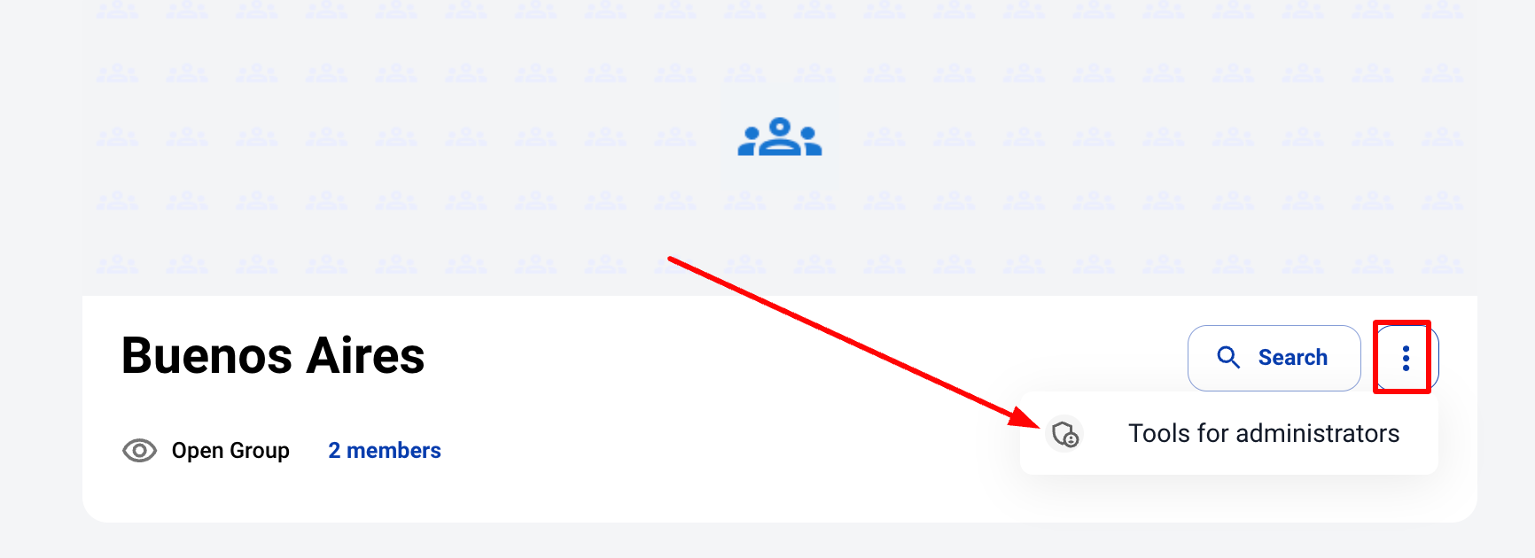 Those members of a group who are Administrators will have available the Tools for administrators, where they will be able to edit the group settings (name, description, privacy type, users, among others). To access these tools you must follow these steps: