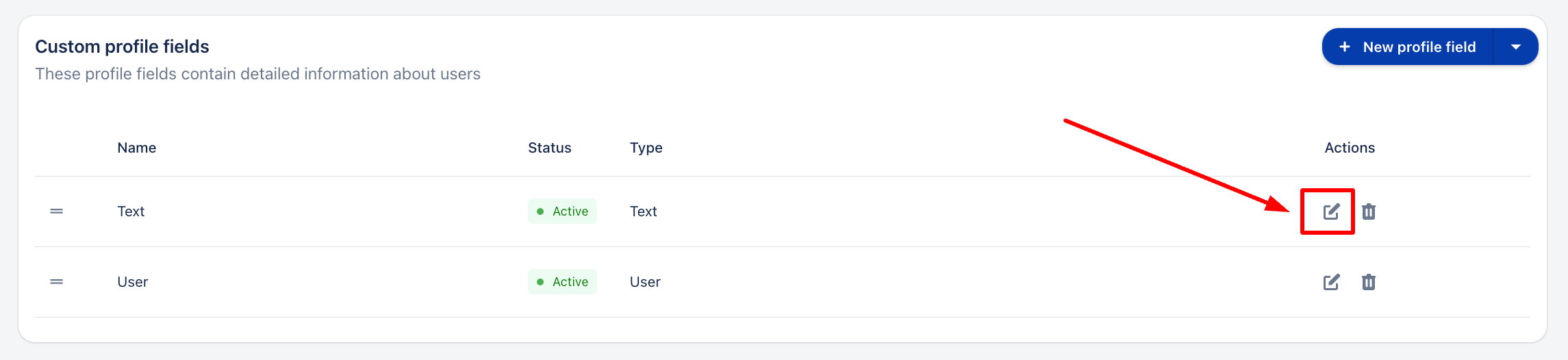 3. Locating the profile field you want to modify, click on the edit button.