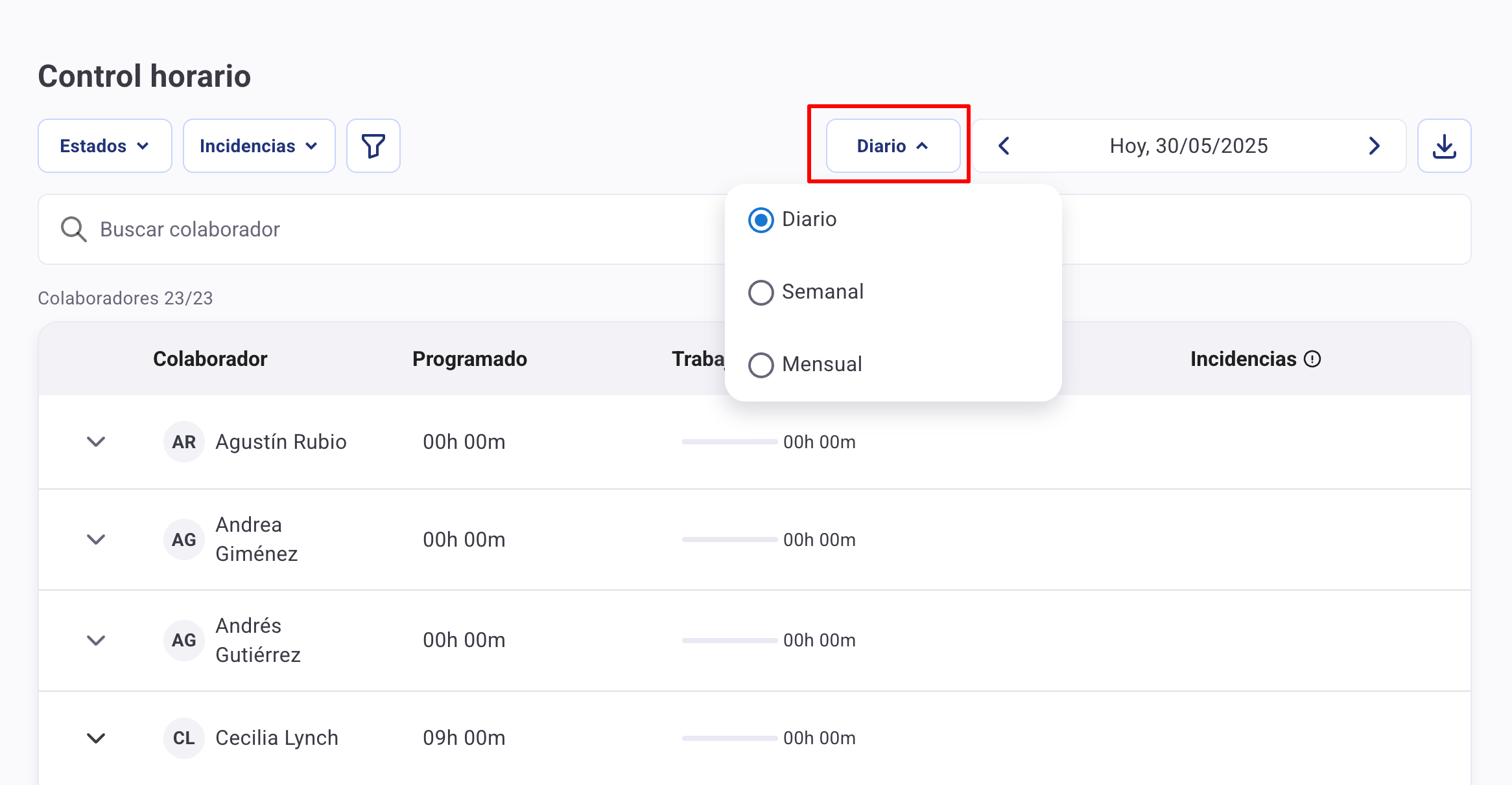 This way, the module not only serves to view time information but also allows you to make corrections and manually upload information to the system.