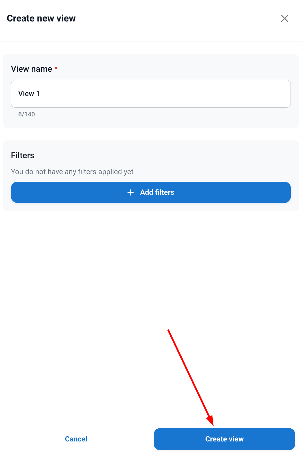 5. Once you have set the filters, click on “Create view” and you're done!