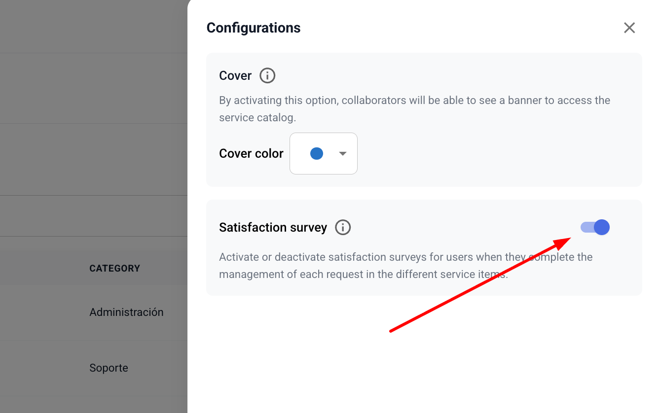 The visibility of the survey depends on whether the feature is enabled in the Administration Panel, under the Service Management section > Service Catalog > Settings.
