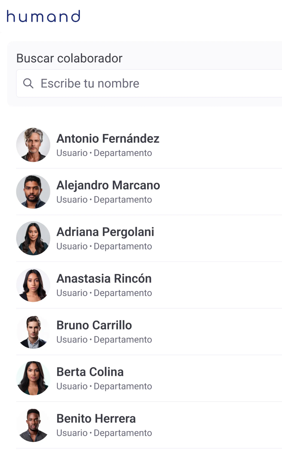 2. Employees can find their name in a list or use the search function to filter the table and select their name.