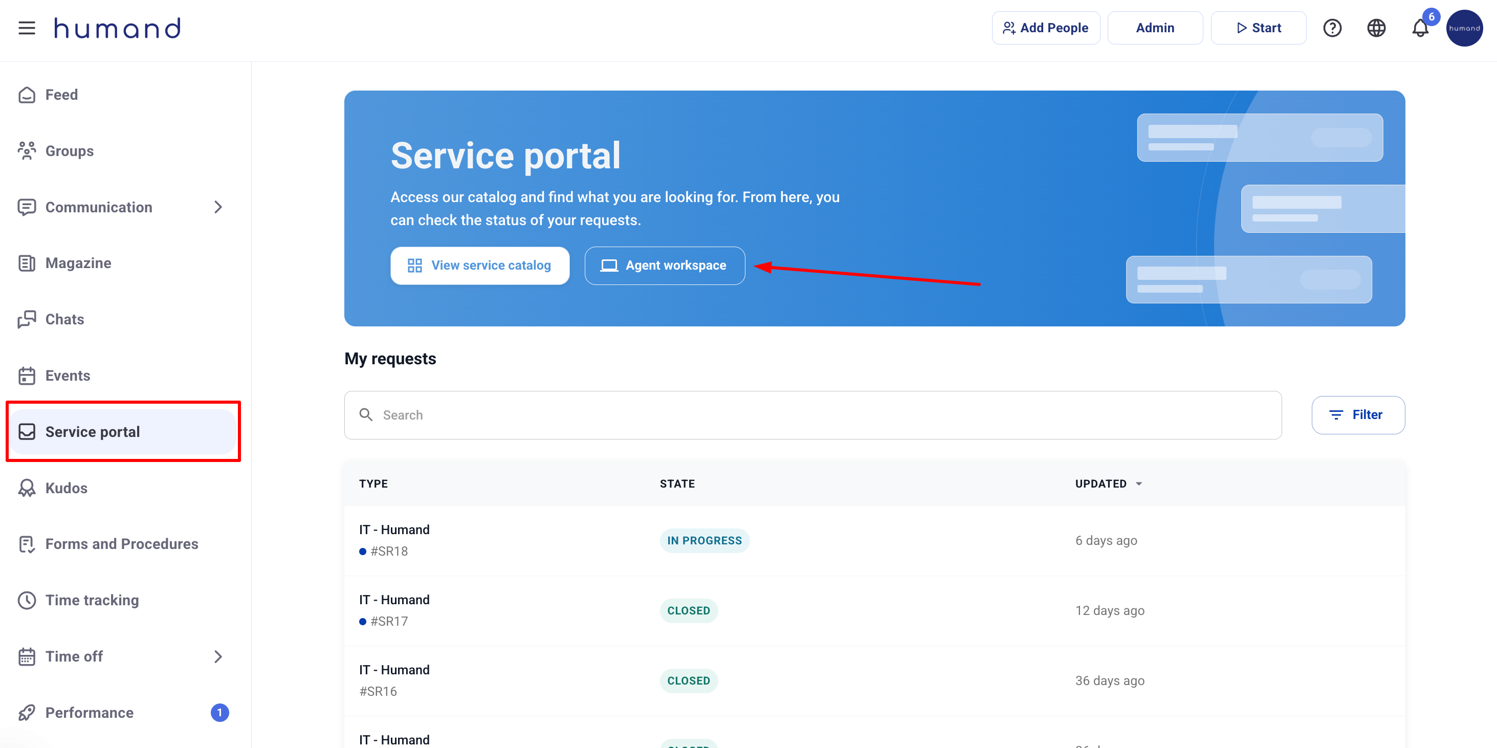 2. Go to the Service Portal > Agent Workspace section.