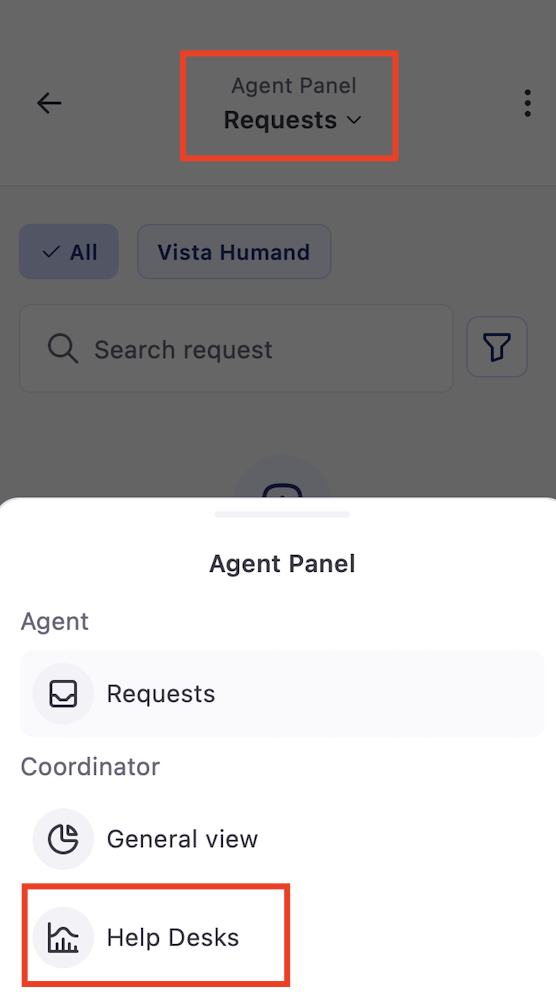 Once assigned as a help desk coordinator, users will be able to access a Coordinator Panel where they can view and manage pending requests from the agents under their supervision.