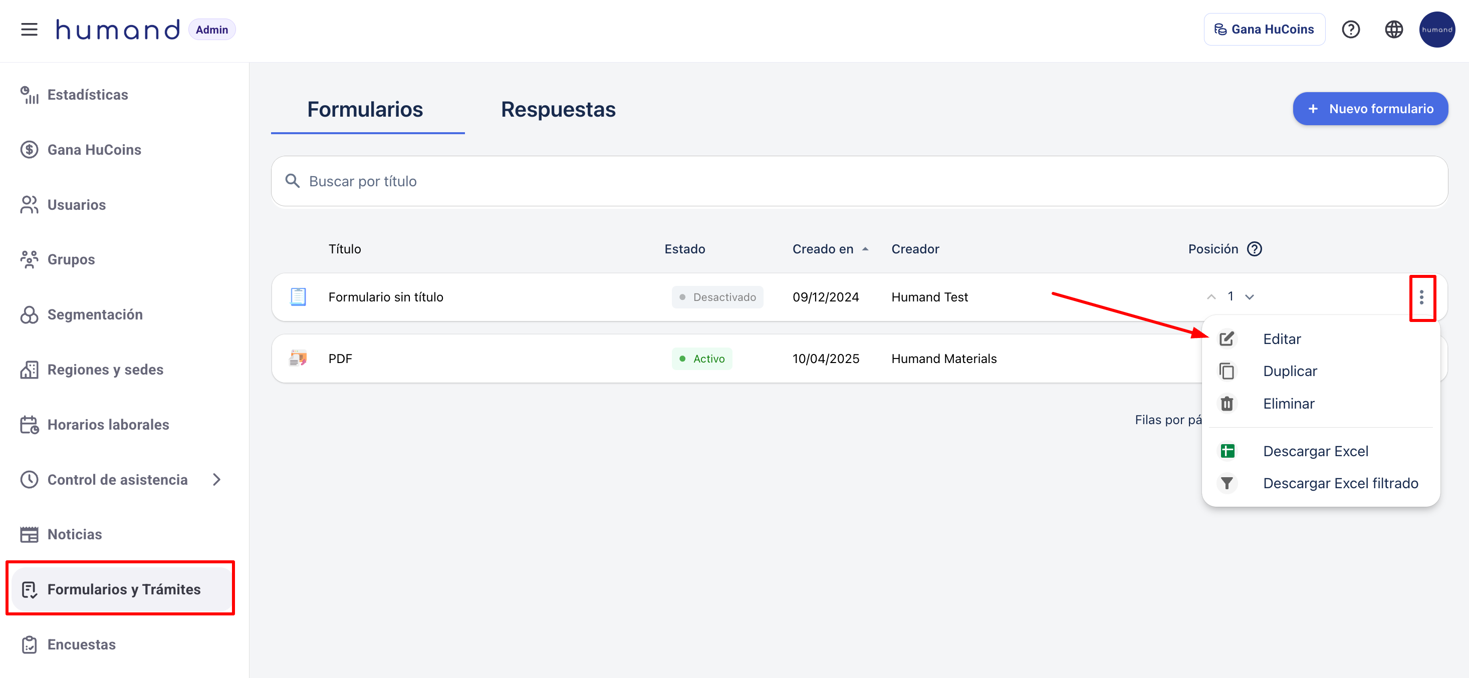 1. Log in to Humand Admin.