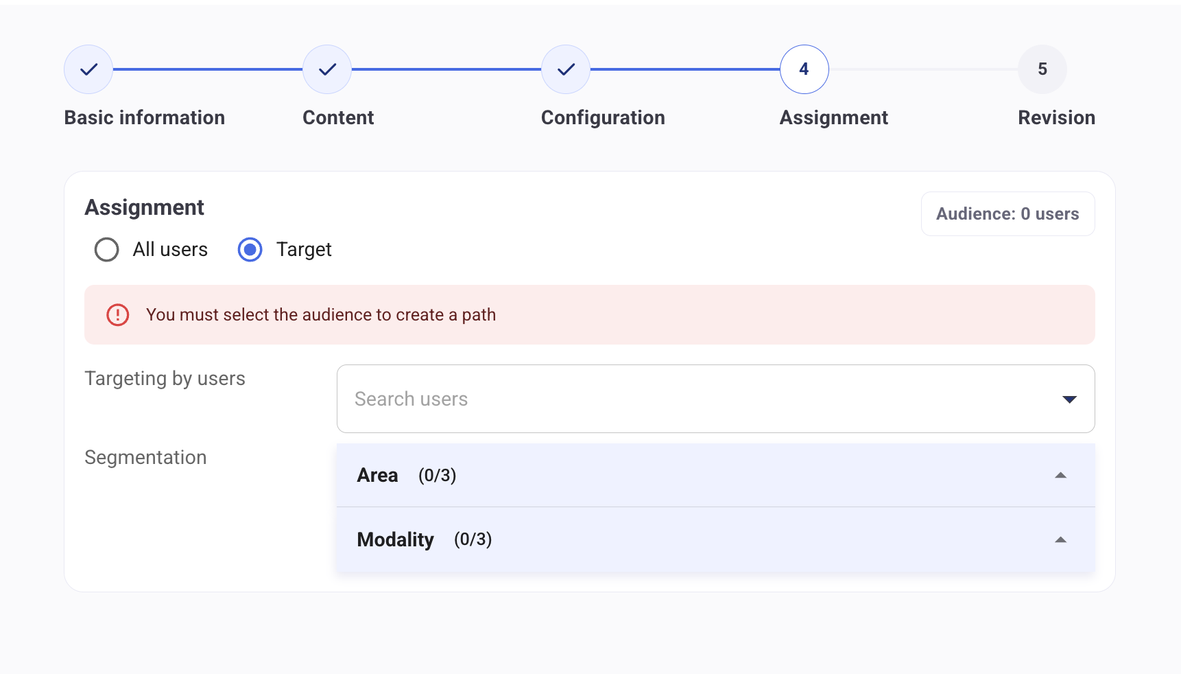 - In the fourth step, the path assignment must be defined, that is, who must or can do it.
