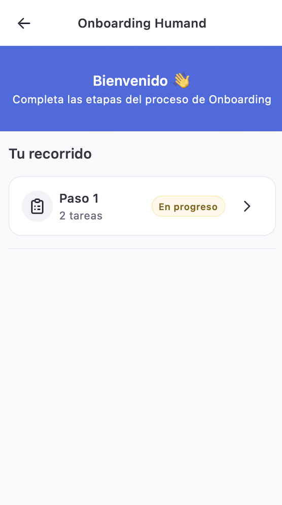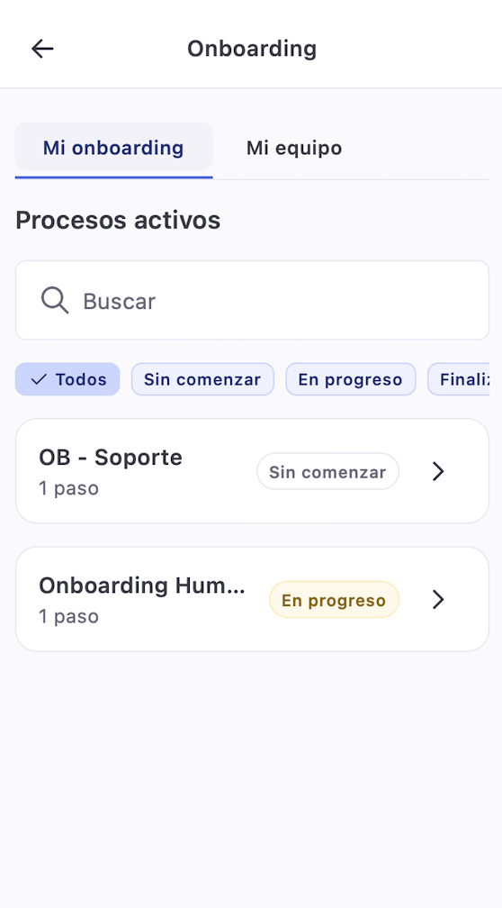 3. Once inside, you can see your active Onboarding processes with their respective statuses. To complete a task or questionnaire, you need to enter the specific process.