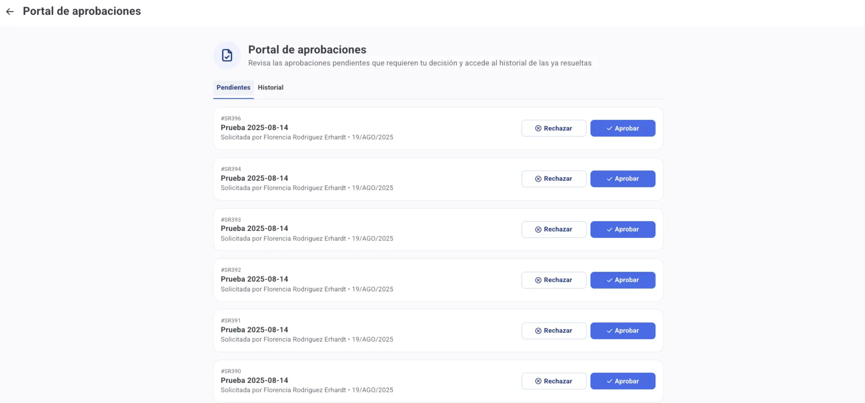 In the main view, the user finds all the approvals they need to resolve, with clear and summarized information.