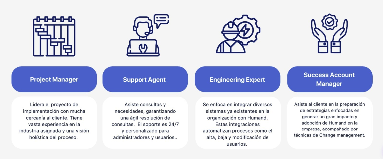 Durante toda tu vida en Humand dispones de un equipo experto asignado full-time al proyecto. Este equipo de profesionales está enfocado en brindarte la mejor la experiencia para que la implementación, lanzamiento y adopción de Humand en tu comunidad sea fácil, ágil y cercana para todos los colaboradores.