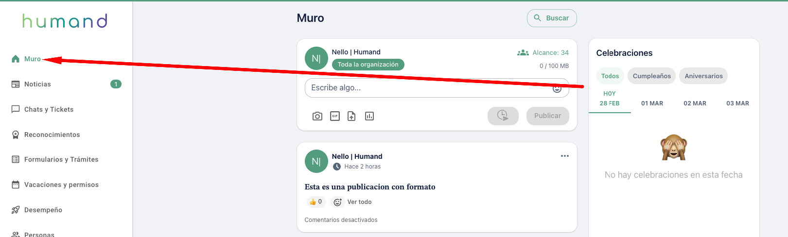 A continuación te explicamos cómo acceder al Muro de tu comunidad, ya sea desde Humand Web (PC) o desde Humand App: